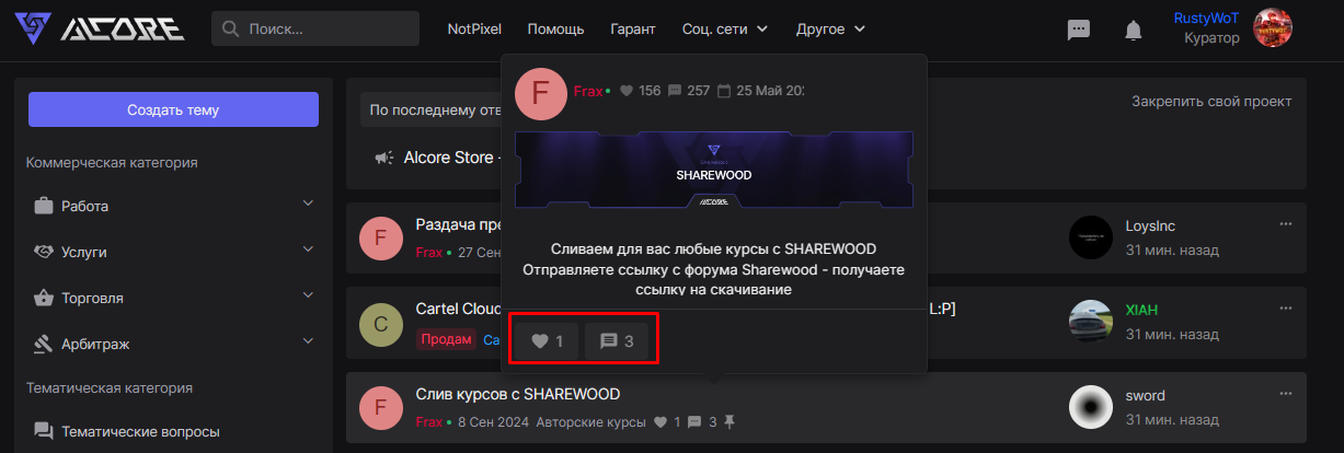 кнопка лайка так же как и кнопка ответа перебрасывает в тему вместо ее функции