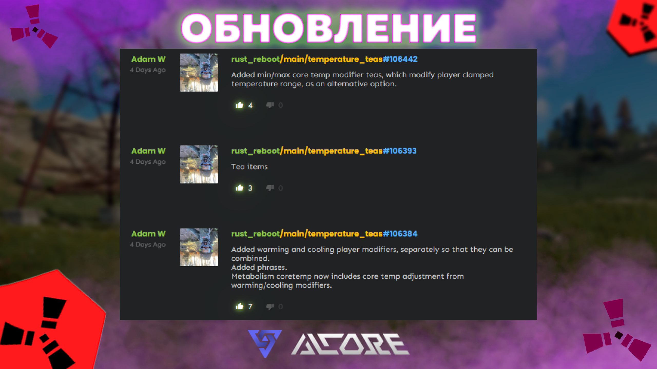 Чай для регулирования температуры Чай позволяет игрокам изменять минимальные и максимальные границы температуры тела через специальные модификаторы.