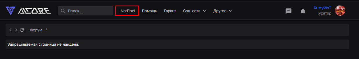 Исправлено  Не доступна страница NotPixel