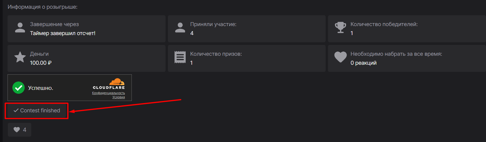 Исправлено  После окончания розыгрыша остается капча.