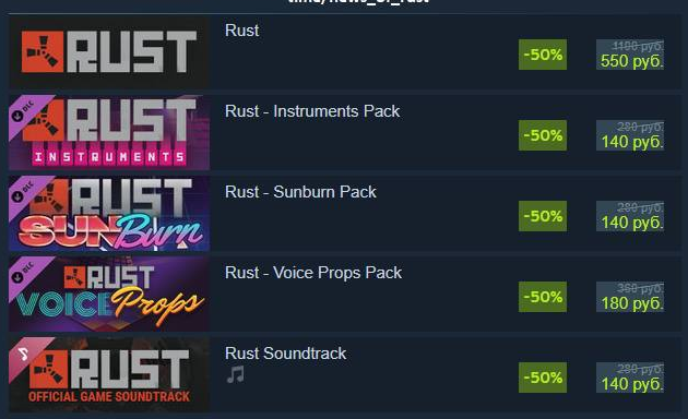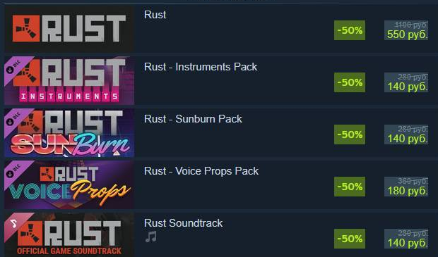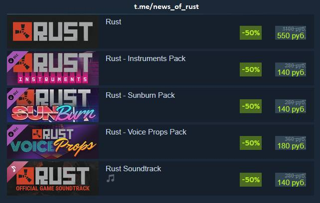 В честь этого действуют скидки 50% на все их продукты, включая Rust и DLC к нему. Акция продлится до 22 июля Facepunch - создатели Rust, Garrys Mod и многих других игр