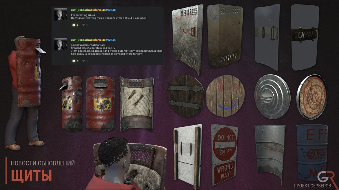 Разработчики приступили к работе над Щитами Пока что предмет будет автоматически экипироваться в слот рюкзака, так же нельзя будет кидать оружие, если у вас экипирован щит. Предмет находится на ранней разработке, так что остается ждать новости от работы.