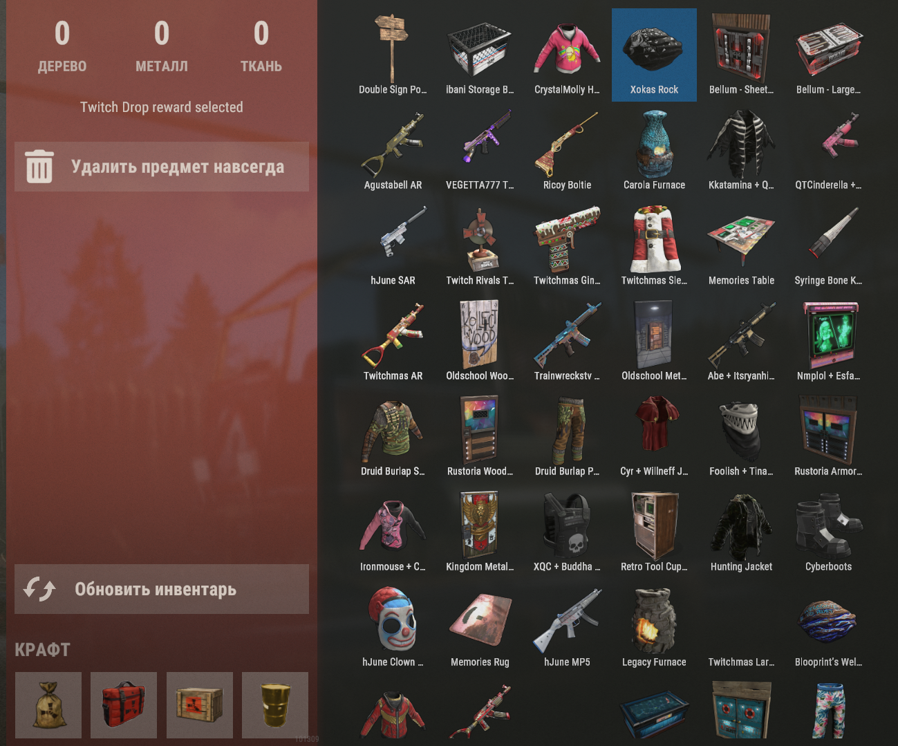 Jarryd Campi - автосортировка сундуков. В настоящее время работает только с большими деревянными ящиками, может быть настроен из панели добычи. Сортировка применяется каждый раз, когда изменяется список предметов, поэтому, пока сортировка активна, игрок не может перетаскивать предметы внутри контейнера. Пока что есть 2 режима сортировки - в алфавитном порядке и пользовательский режим [использует снимок текущего состояния контейнера и попытается его воссоздать]