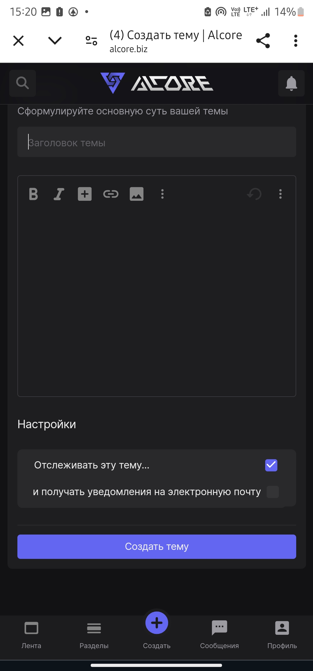 При создании темы в пункте "Настройки" отсутствует заглавление "и получать уведомления на электронную почту"