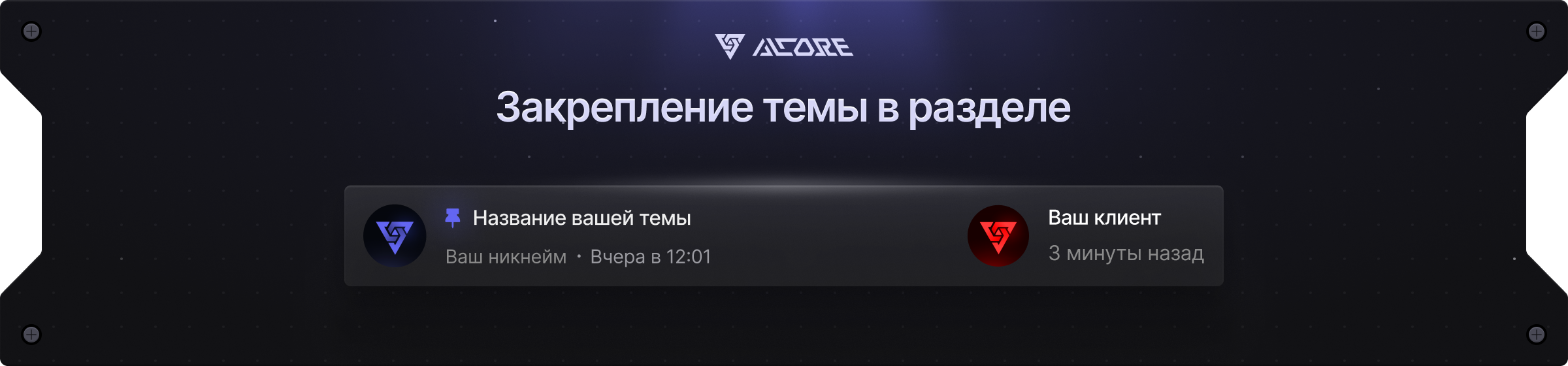 Закрепление вашей темы с услугами во всех разделах Закрепление темы осуществляется во всех разделах форума над списком тем. Покупка осуществляется по нажатию кнопки "Закрепить мою тему", после оплаты тема будет отправлена на модерацию.