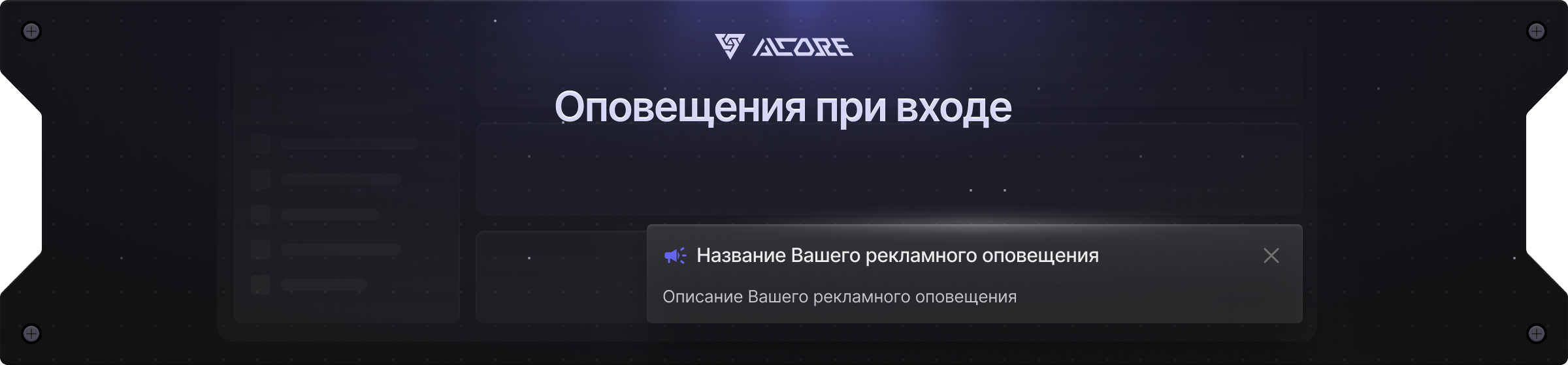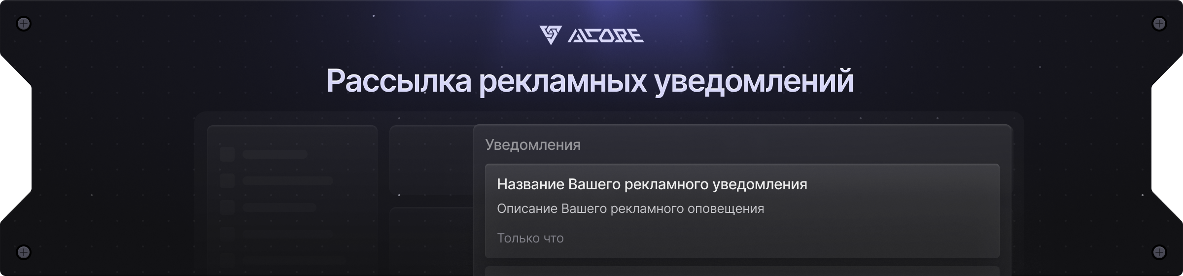 Рассылка рекламных уведомлений Рекламное сообщение отправляется в виджет уведомлений каждому пользователю. Возможна как разовая покупка, так и на определённый период.