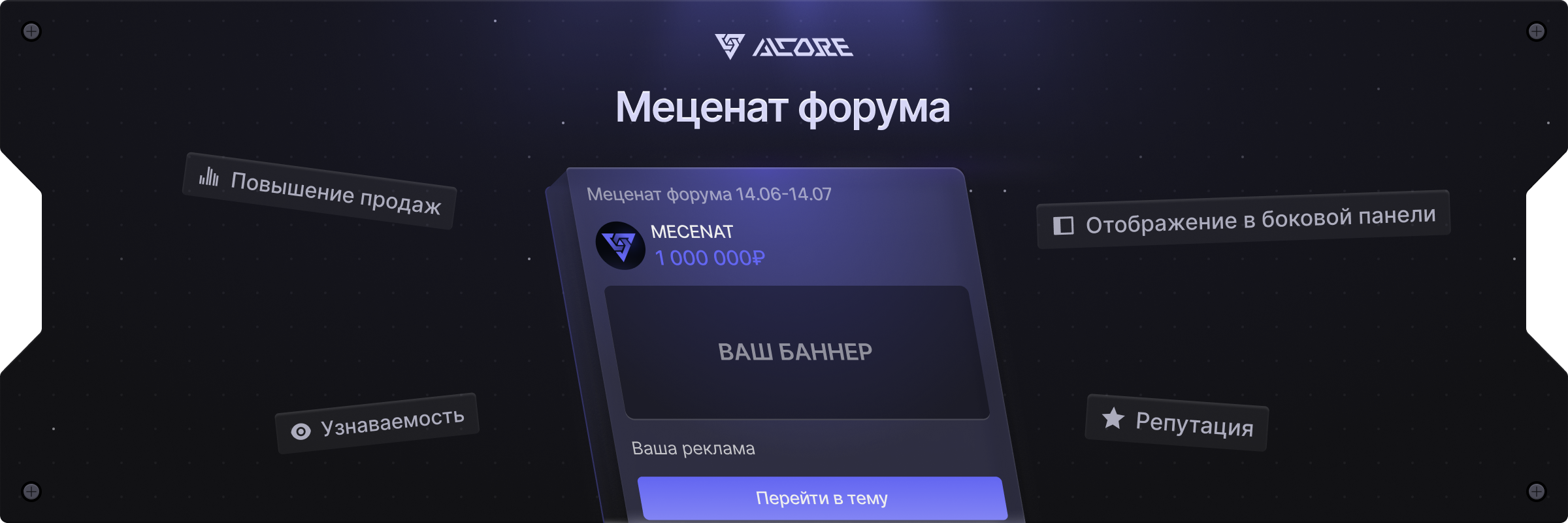 Меценат форума Станьте нашим меценатом и мгновенно заполучите: популярность и особое внимание к своему проекту. Блок "Меценат форума" отображается на главной странице и во всех категориях в течении месяца.