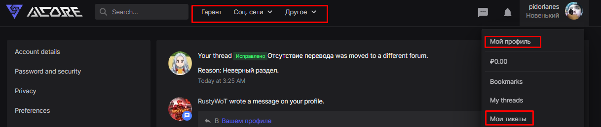 5. Navbar + profile dropdown + "Другое" dropdown