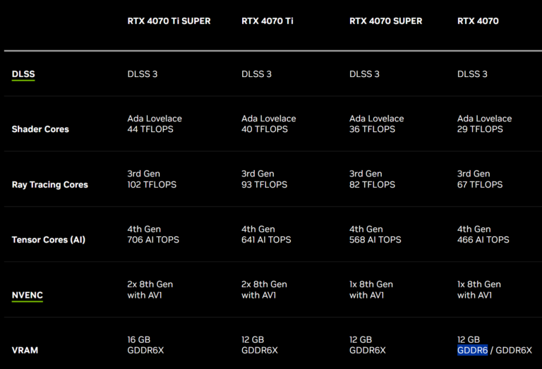 Для улучшения поставок и удовлетворения высокого спроса мы представляем GeForce RTX 4070 со сверхбыстрой памятью GDDR6. Все остальные характеристики остались прежними. Она обеспечивает аналогичную производительность в играх и приложениях.