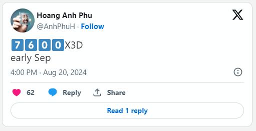 Новая модель почти наверняка будет ориентирована на цену ниже 300 долларов, учитывая, что 7800X3D уже была замечена по цене 330 долларов. Выпуск этой модели также совпадает с планами AMD по выпуску серии 9000X3D в сентябре, хотя AMD еще не подтвердила эти планы.
