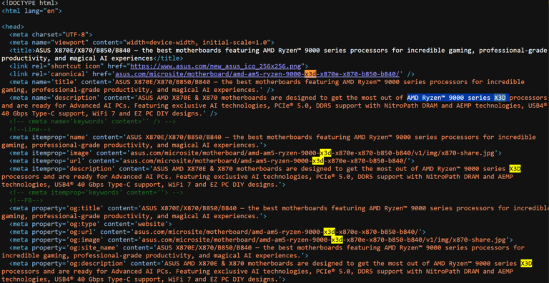 Как выяснил @momomo_us, компания ASUS случайно указала серию Ryzen 9000 X3D на своем микросайте, который был запущен вчера для новых материнских плат 800-й серии. На сайте не только упоминается серия 9000 X3D, но и весь контент наполнен ссылками на эти еще не вышедшие процессоры AMD.