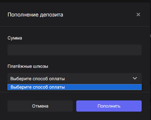 Исправлено  Не добавлены платёжные шлюзы в пополнение депозита