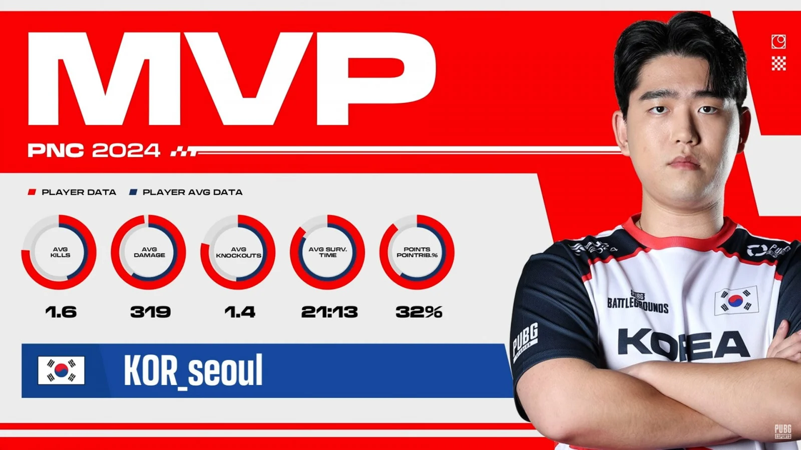 Участник южнокорейской сборной Cho"seoul" Gi-yeol признан самым ценным игроком (MVP) минувшего интернационального чемпионата PUBG Nations Cup 2024 по PUBG: BATTLEGROUNDS. Подробная статистика игрока на турнире представлена ниже.