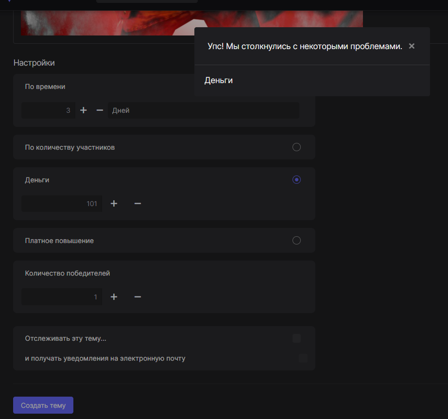 Отклонено  При создании розыгрыша возникает проблема