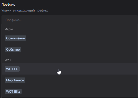 Реализовано  Добавить префиксы в раздел World Of Tanks