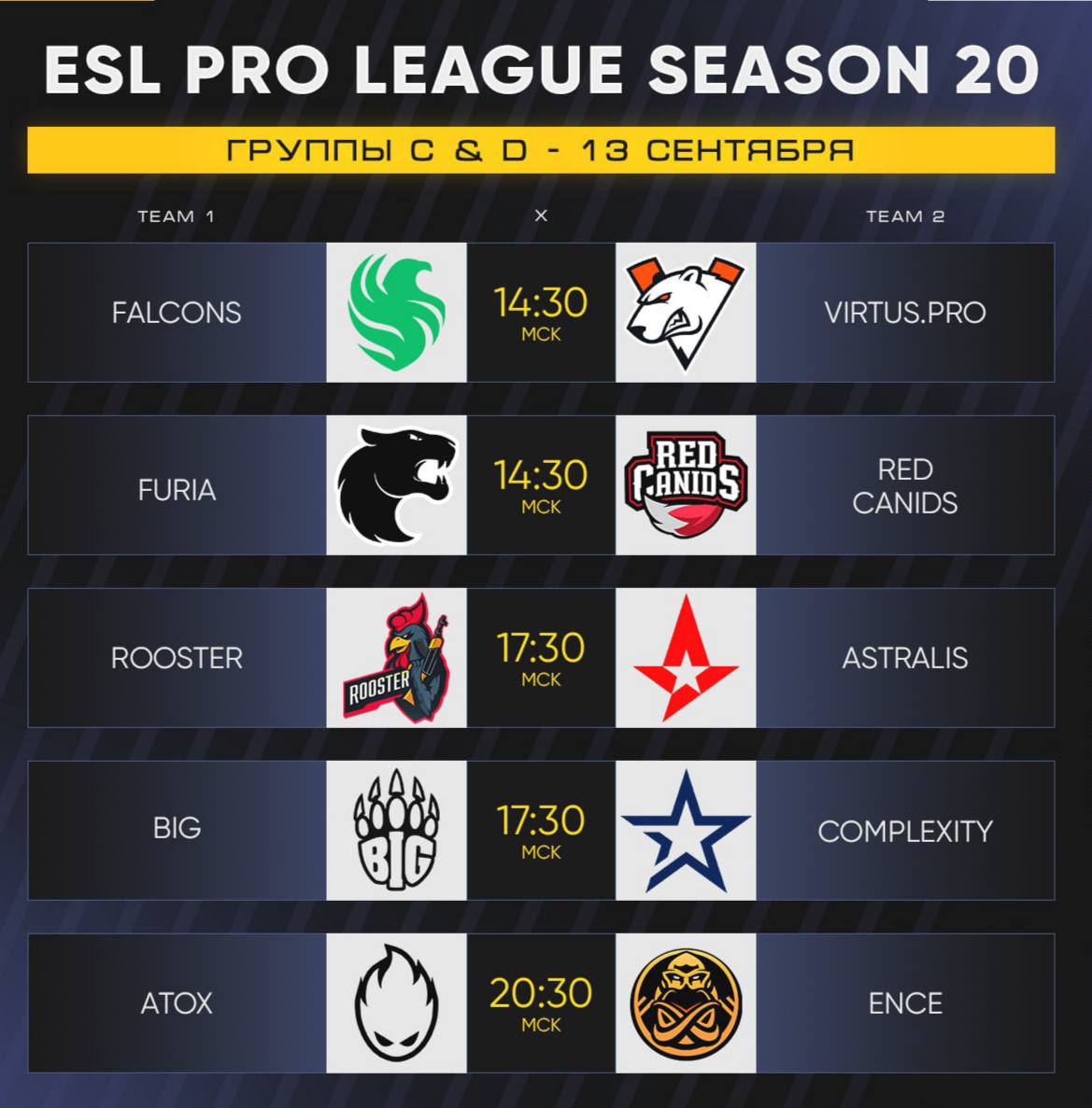 Киберспорт Турнир  Расписание матчей на 13.09