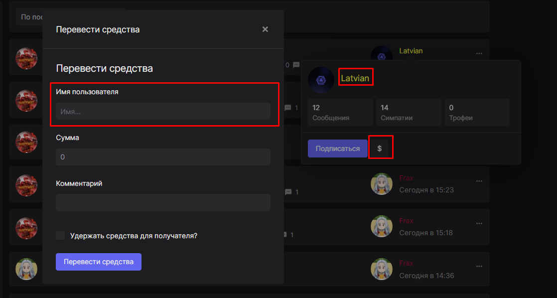 Реализовано  Автоматическая вставка ника при переводе средств через мини профиль