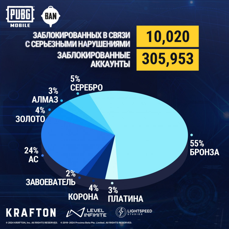 Разработчики мобильной версии PUBG забанили 305 тысяч аккаунтов читеров (и 10 тысяч устройств) за период с 6 по 12 сентября.